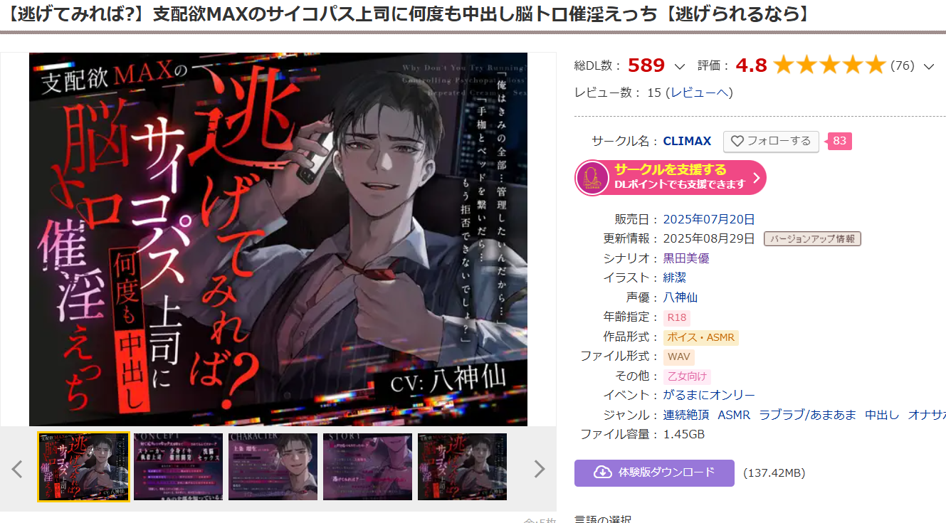 「支配欲MAXのサイコパス上司に何度も中出し脳トロ催淫えっち」のシナリオを担当いたしました